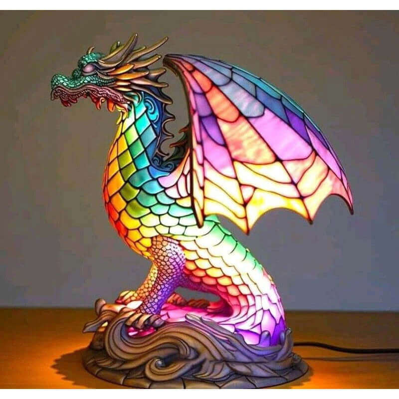 Magische seltsame Tierbildskulptur, bunte Lichtornamente