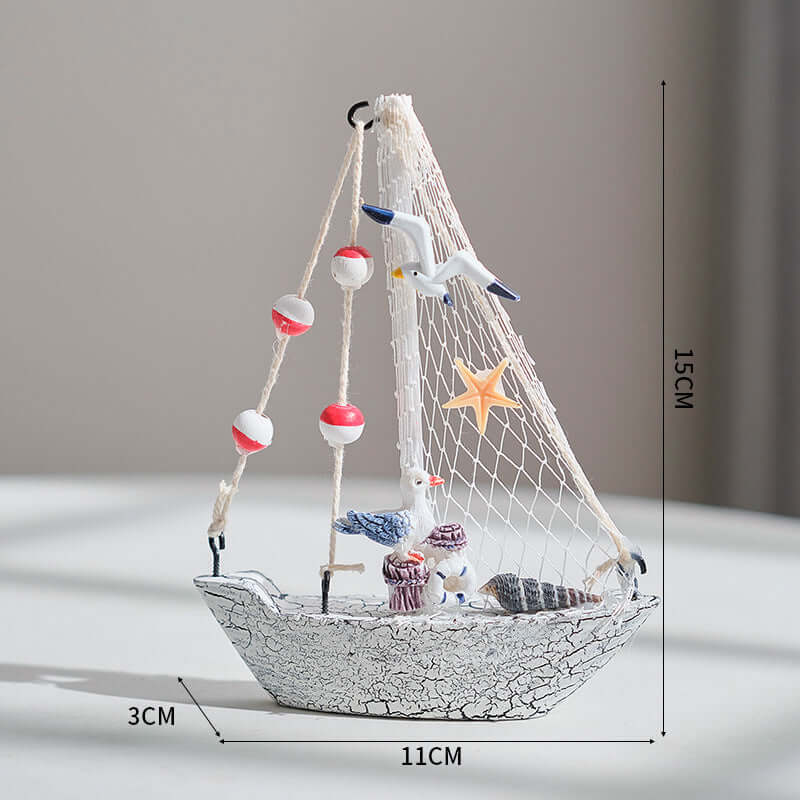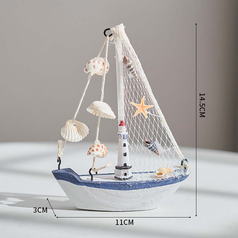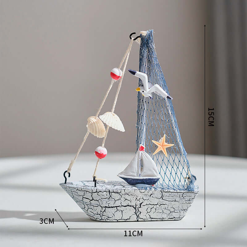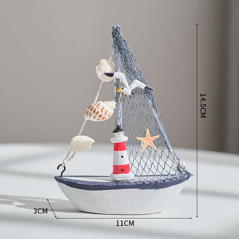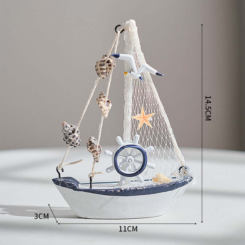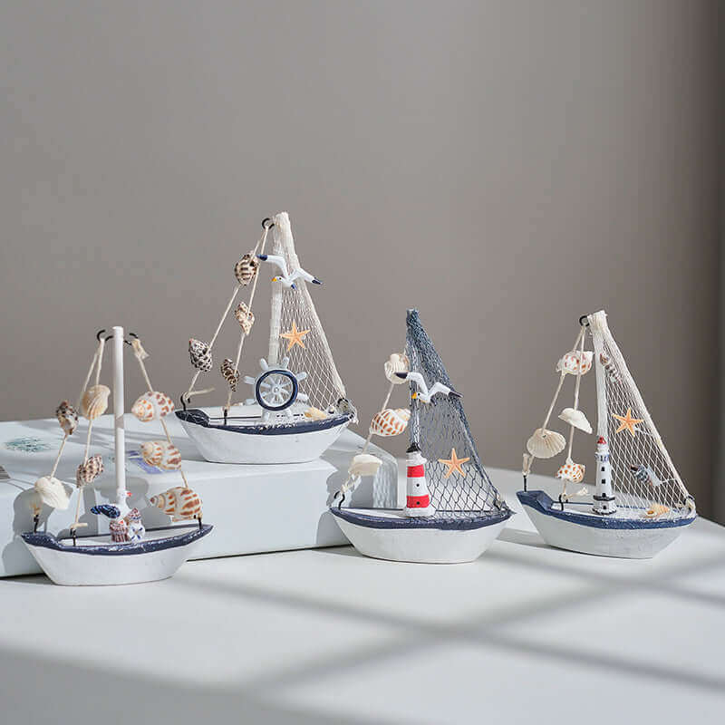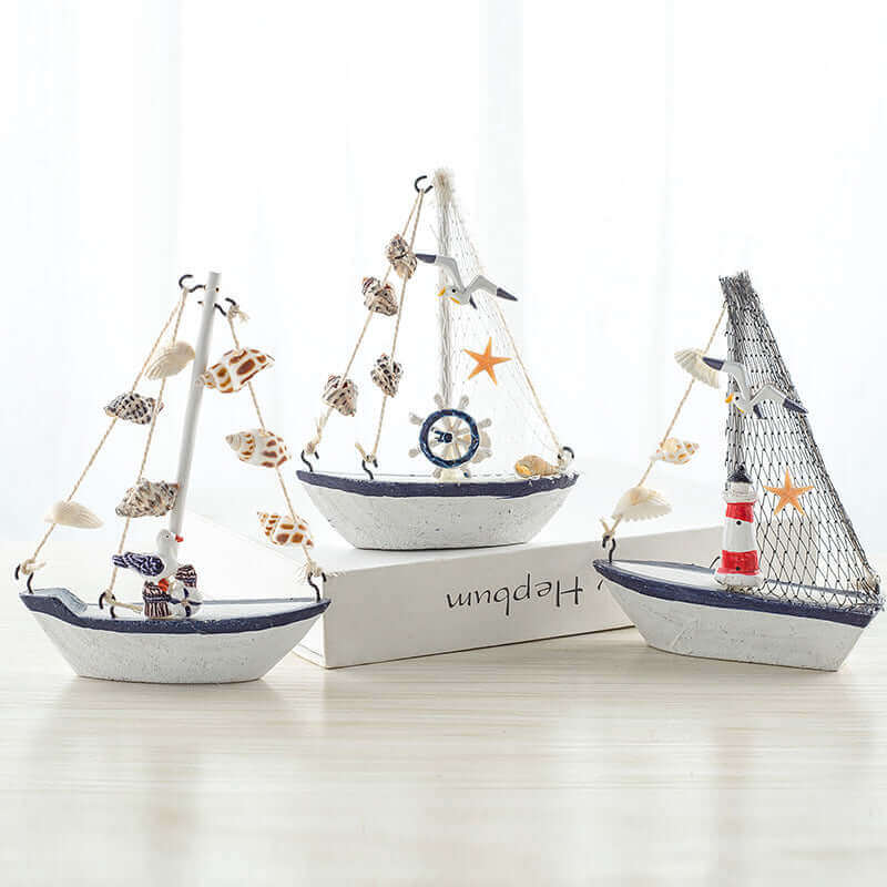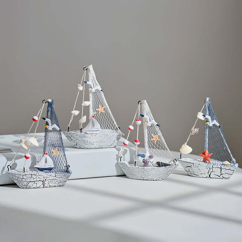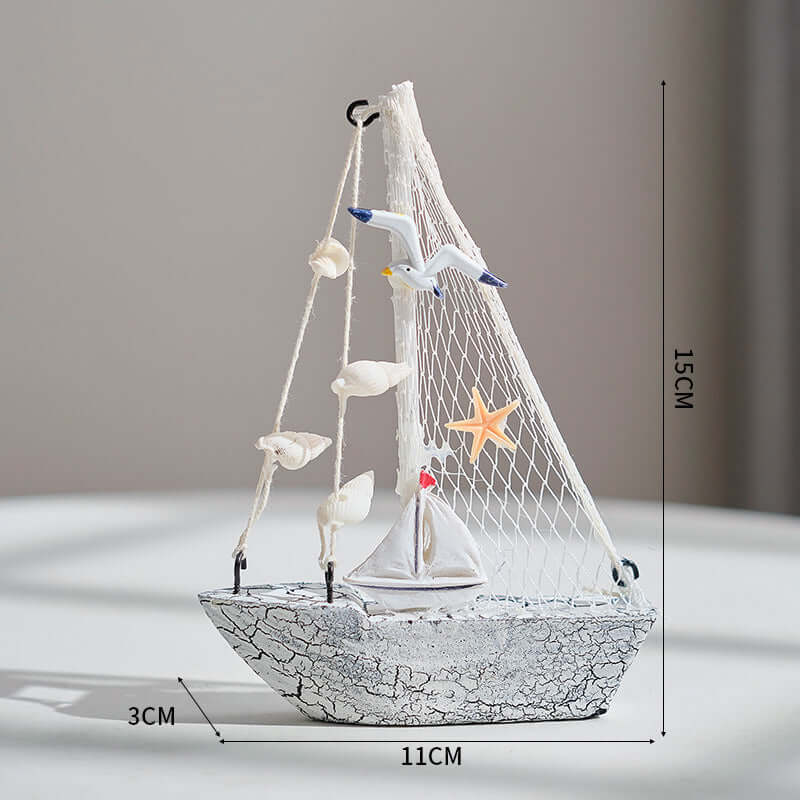Mittelmeer-Stil Shell Crack Boot Dekoration Holz Segelboot Modell kleine Ornamente Handwerk Boot