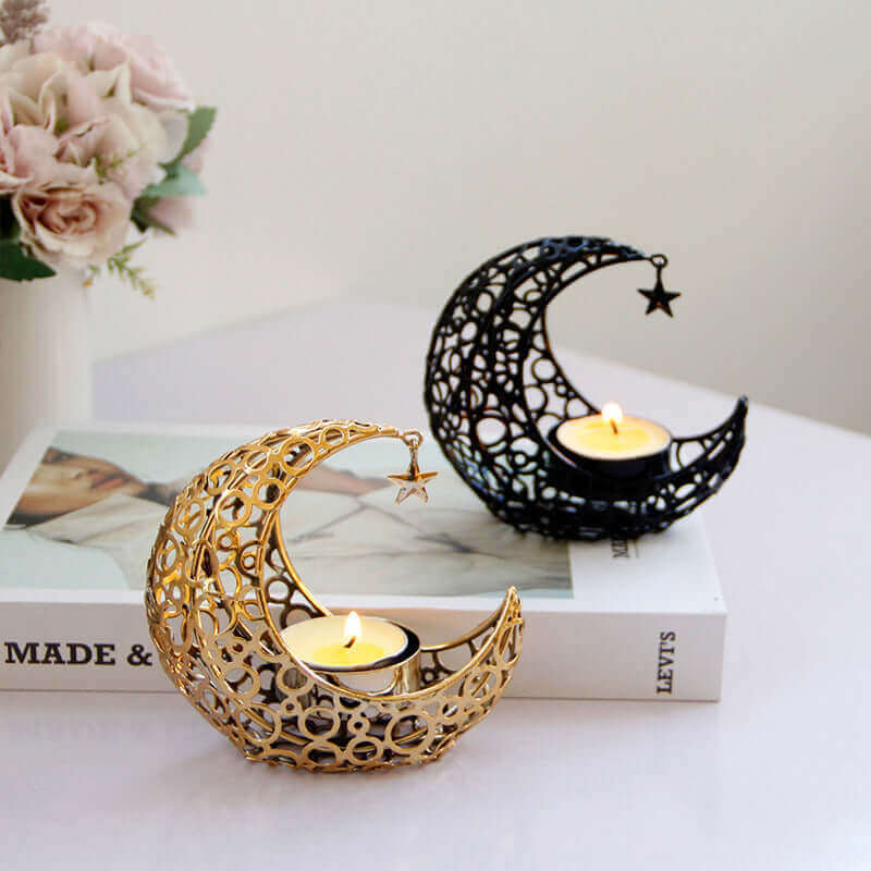 Leichter Luxus Halbmond Stern Mond Schwarz Gold Metall Kerzenhalter Moderne Romantische Hochzeit Weihnachten Kerze Tasse Wohnkultur