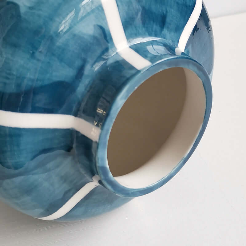 Verleihen Sie Ihrem Wohnzimmer-TV-Schrank mit dieser chinesischen Keramikvase einen Hauch von Eleganz. Diese Vase im traditionellen neuchinesischen Design besticht durch ihre wunderschöne handbemalte und glasierte Oberfläche und ist ein einzigartiger Blickfang für Ihre Einrichtung. Die Vase aus hochwertiger Keramik ist bemalt, handgefertigt und mit farbiger Glasur versehen, die für ein atemberaubendes Finish sorgt. Werten Sie Ihren Raum mit diesem einzigartigen Stück auf, das Sie begeistern wird.