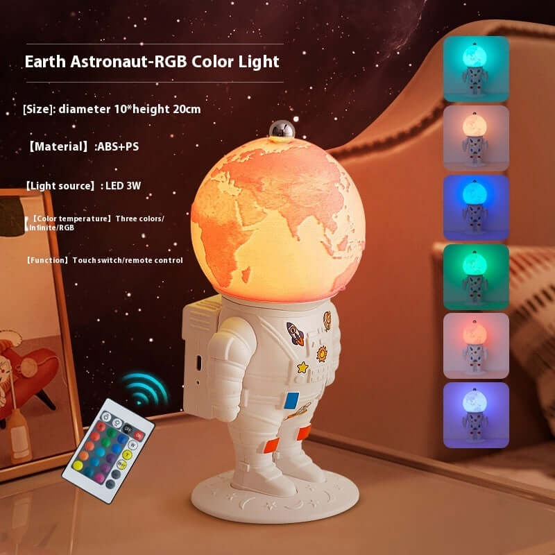 Die kleine Nachtlampe Creative Astronaut Moon Charging Astronaut bietet einen eingebauten Akku für eine einfache Stromversorgung. Mit einem Berührungsschalter können Sie aus einer Vielzahl von Farben wählen und das dreifarbige elektrodenlose Dimmen genießen. Für zusätzlichen Komfort verfügt der zylindrische Typ auch über eine Fernbedienung. Das vom Weltraum inspirierte Design und die 15 Farboptionen machen diese Lampe zu einer faszinierenden Ergänzung für jeden Raum. Die Spannung dieser Lampe beträgt ≤ 36 V und ihre Größe beträgt 22 cm x 10 cm, was sie zur perfekten Größe für jeden Weltraumliebhaber macht. Verpassen Sie nicht die Gelegenheit, mit dieser unglaublichen Lampe die Schönheit des Mondes und der Erde in Ihr Zuhause zu bringen.