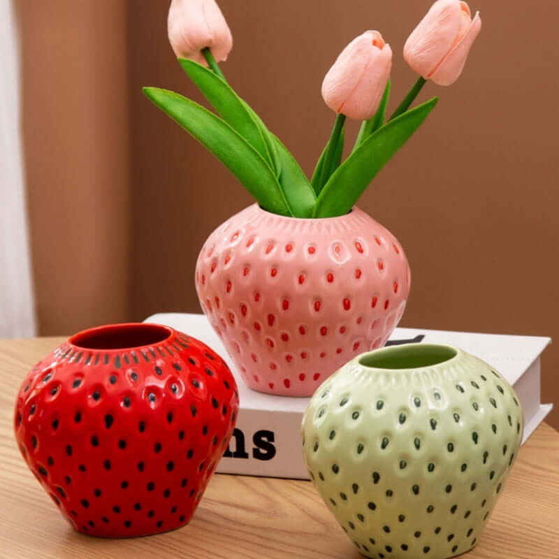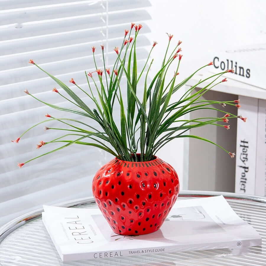 Gut aussehende Erdbeer-Keramikvase, Wohnzimmerdekoration