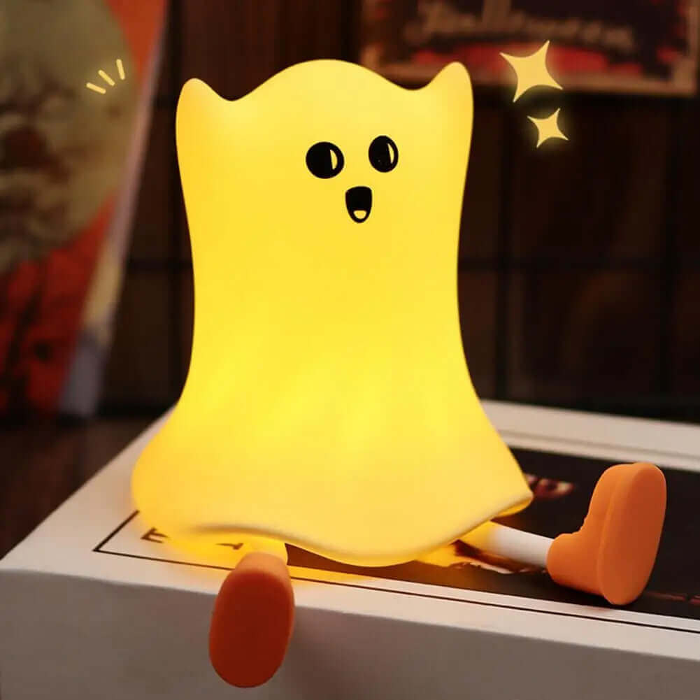 Genießen Sie das langanhaltende Leuchten dieser energiesparenden LED-Lampen. Erleben Sie eine beruhigende und behagliche Atmosphäre mit dem charmanten Geisterdesign aus hochwertigem, weichem Silikon in Lebensmittelqualität. Diese wasserdichte und langlebige Lampe ist perfekt für Kinderzimmer oder den Einsatz am Bett geeignet und verleiht eine bezaubernde Note. Sie wird von einer eingebauten Batterie gespeist und strahlt mit einer Spannung von ≤ 36 V in einem hellgelben Farbton. Mit den Maßen 128,3 × 102,4 × 150,7 mm bringt diese von Cartoons inspirierte Lampe eine einladende Atmosphäre in jeden Raum.
