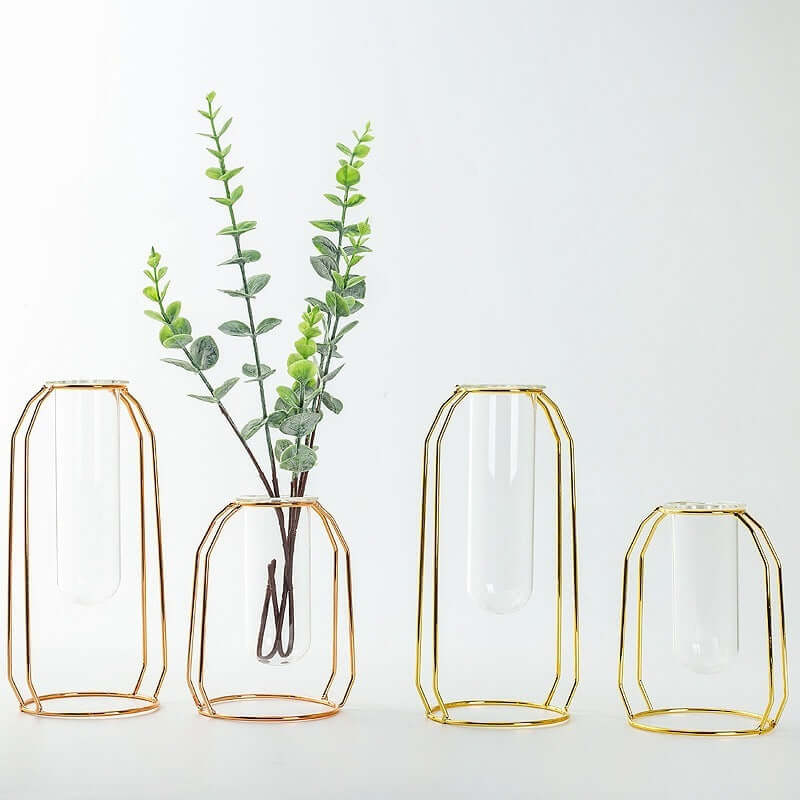 Hydroponische Vase aus Glas, Draht, Metall, geometrische Schmiedeeisenvase
