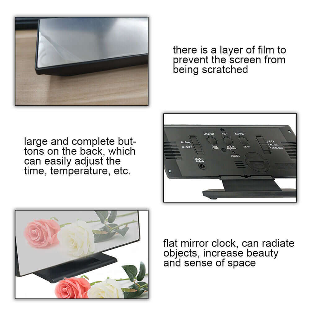 Revolutionieren Sie Ihren Nachttisch mit unserem digitalen LED-Wecker mit gebogenem Display! Unser modernes und elegantes Design bietet Temperaturanzeige, Schlummerfunktion und einstellbare Helligkeitsoptionen. Dank des gebogenen Bildschirms für ein visuelles Erlebnis aus verschiedenen Blickwinkeln können Sie die Uhrzeit Tag und Nacht bequem ablesen. Stellen Sie bis zu drei Weckzeiten ein und sparen Sie Zeit mit der Speicherfunktion. Dank zweier Montagemöglichkeiten und einer Schutzfolie können Sie Ihren Wecker individuell an Ihre Bedürfnisse anpassen. Lassen Sie sich dieses Must-have nicht entgehen!