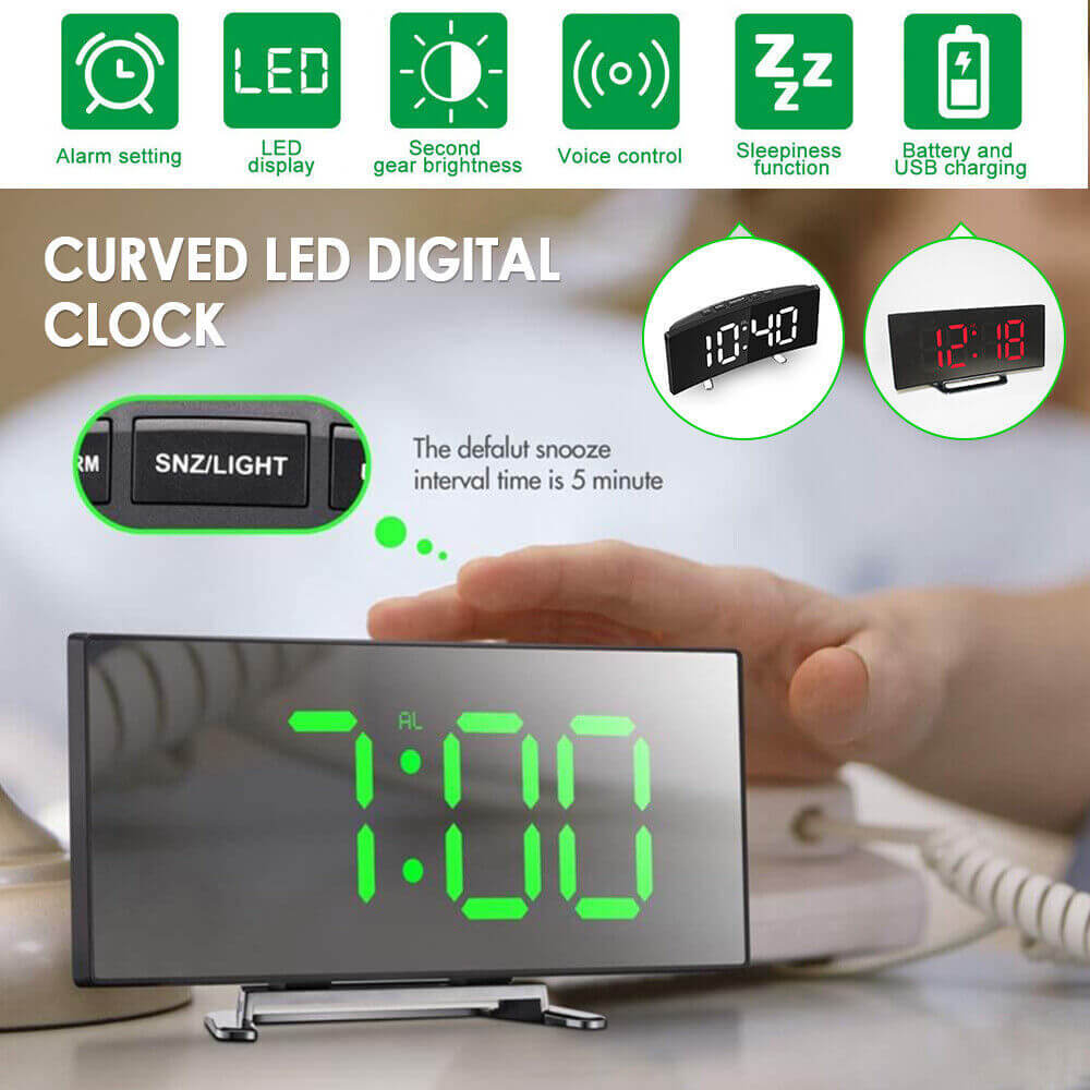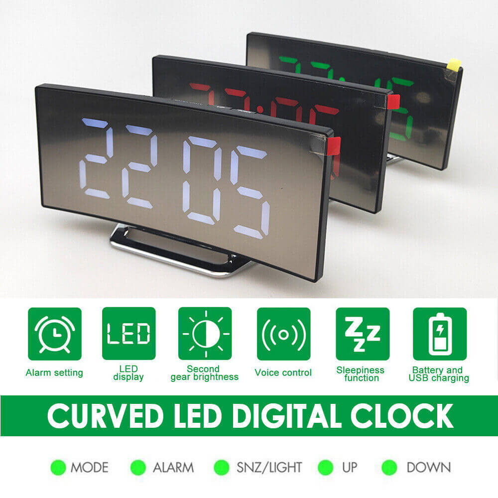 LED Digital Wecker USB Temperatur Gebogene Display Snooze Nacht Moderne Heißer