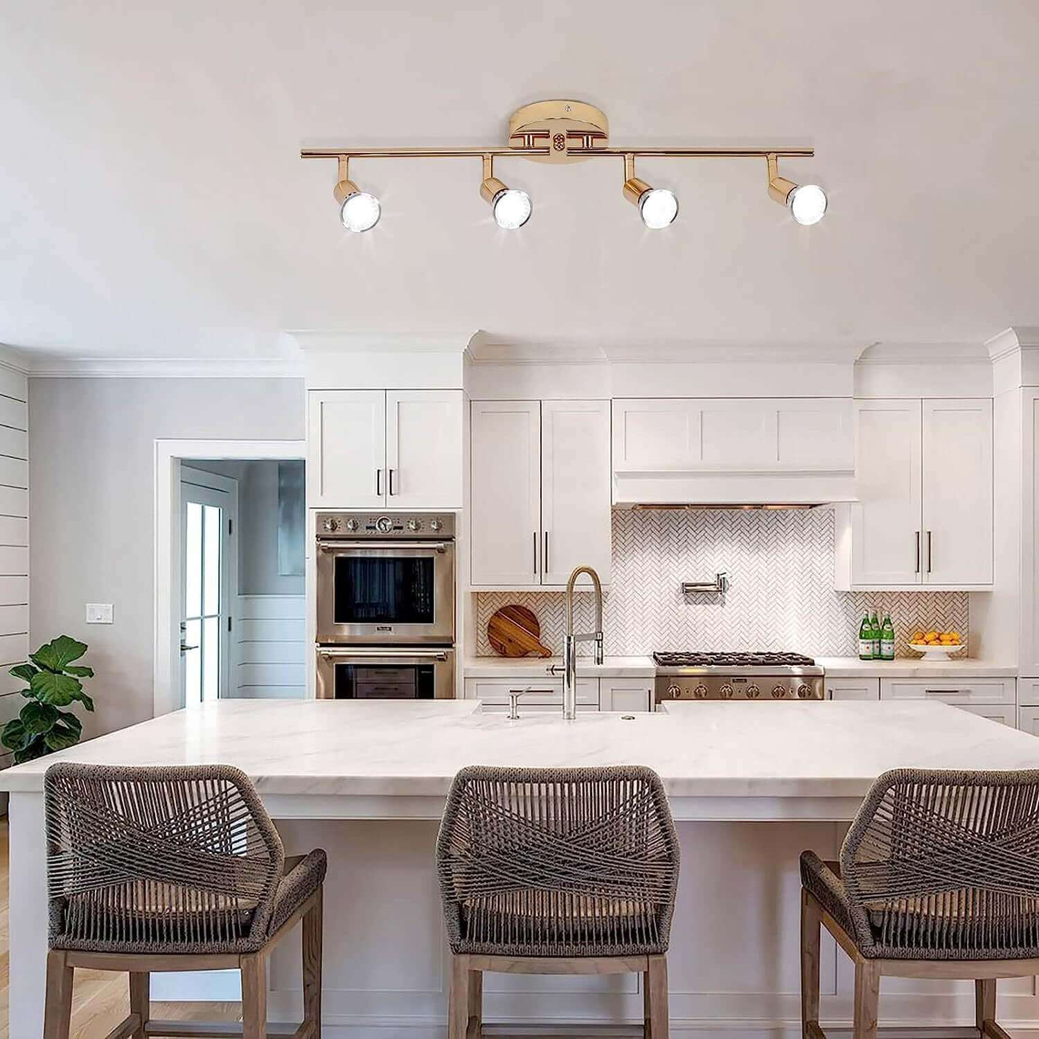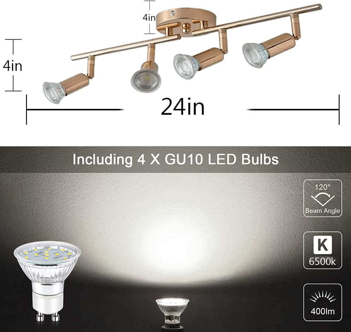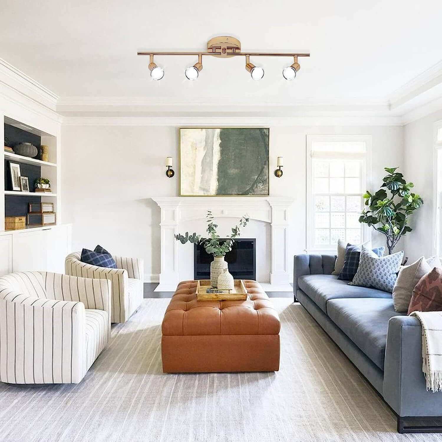 Add warm, inviting light to your home with our Golden Spotlight LED. It features four heads, a sleek stainless steel shell, and can be adjusted to emit warm or white light, perfect for any American, modern, or simple style. Get yours today and elevate your living space!