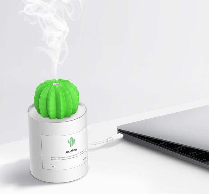 280ML Air Humidifier Soft LED Light Cactus Ultrasonic Aroma Essential Oil Diffuser For Home Car USB Mini Air Purifier