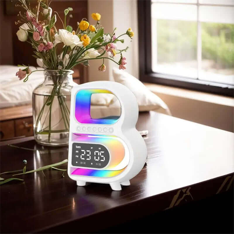 New B-Shaped Blutooth Speaker Multifunctional Smart Music Rhythm Lighting Phone Wireless Charger TF Card AUX Input Standard Mode