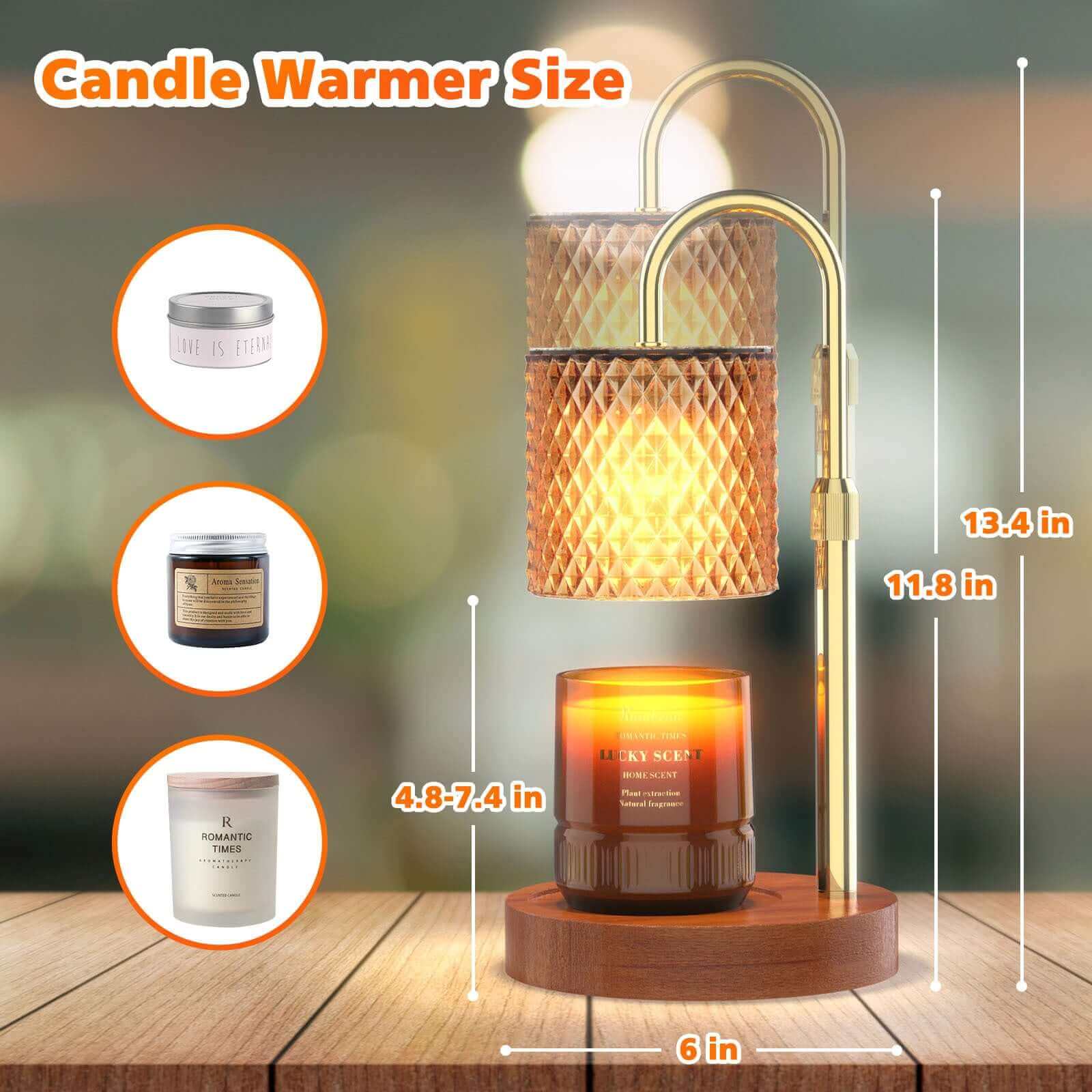 RAINBEAN Candle Warmer Lamp, Adjustable Height Electric Candle Warmer with Timer & Dimmer