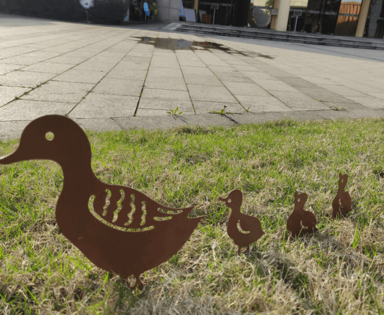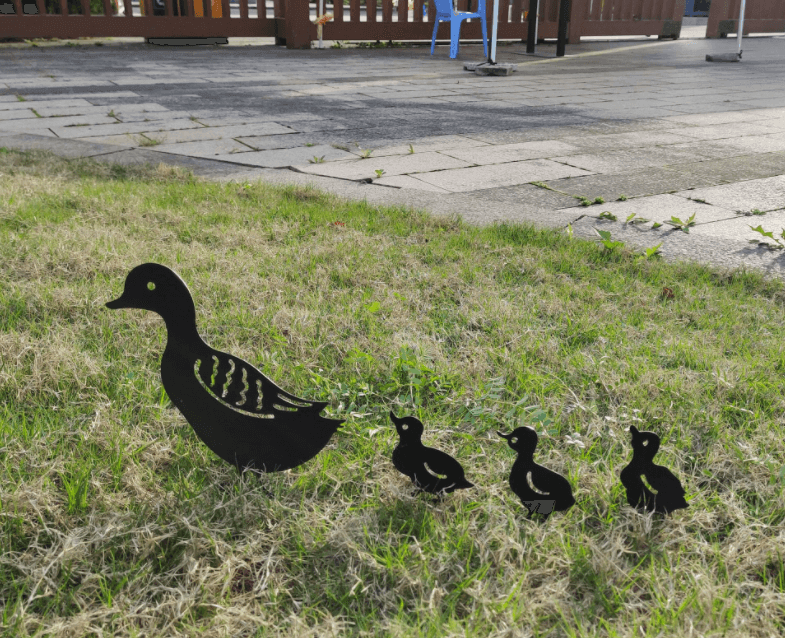 Nouvelle décoration de jardin en fer canard famille herbe décoration de jardin en métal creux décoration de jardin