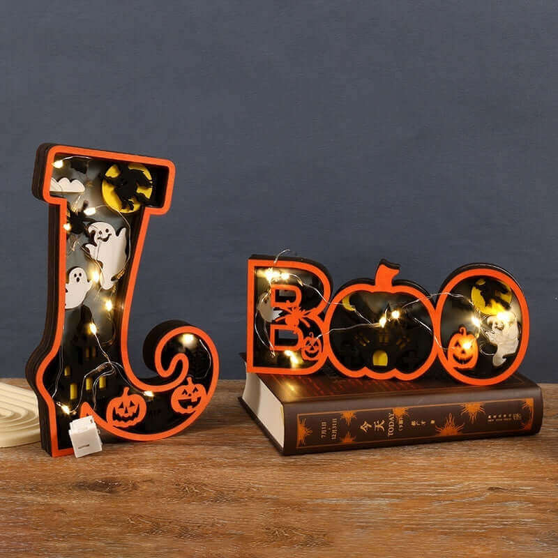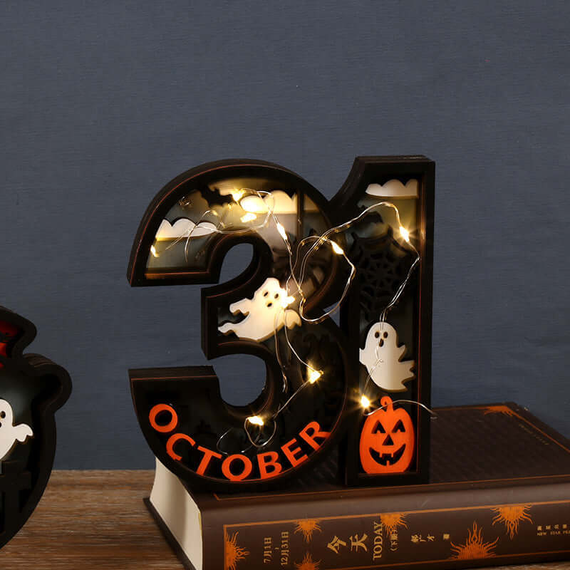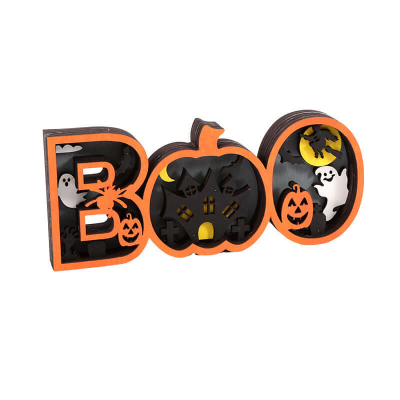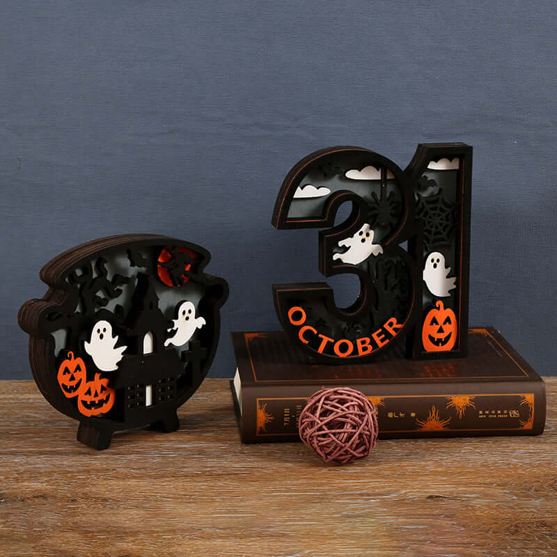 Halloween Wooden Decoration Creative Ghost With LED Light Ornaments