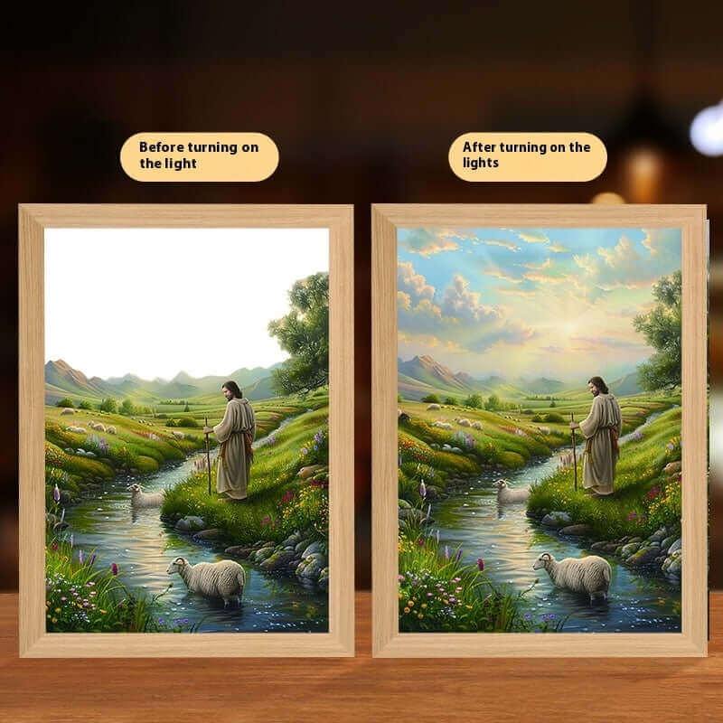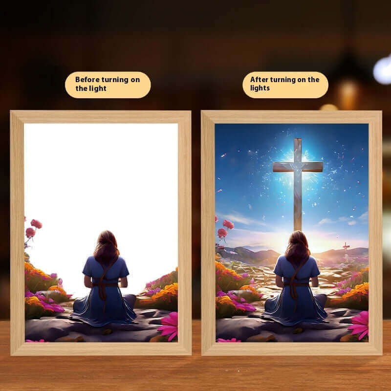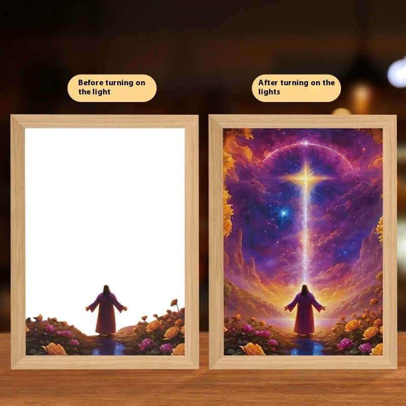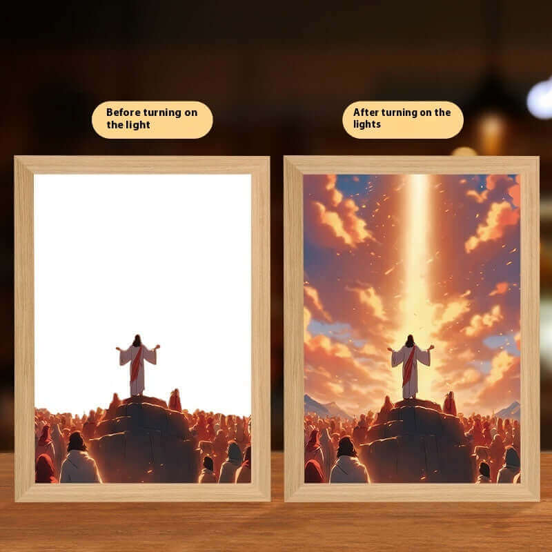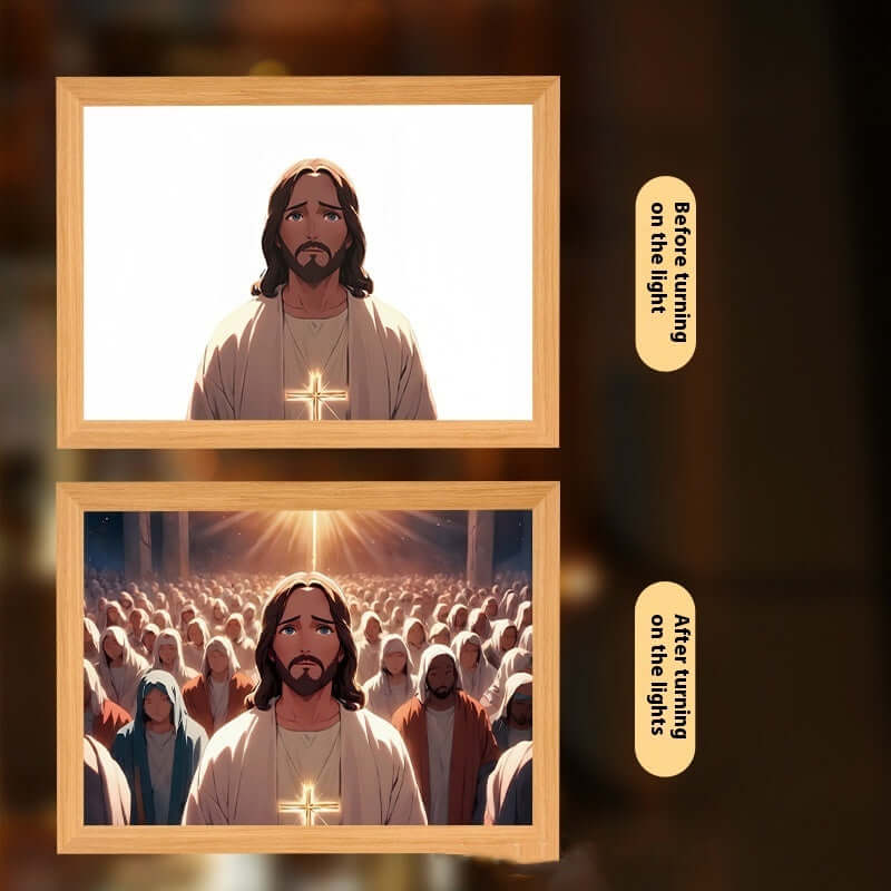 Jesus LED Light Painting Home Decoration Light Painting Photo Frame Led Night Light Room Decor Christmas Gifts Moon Lamp