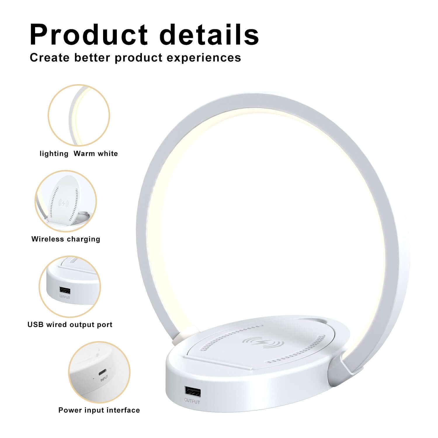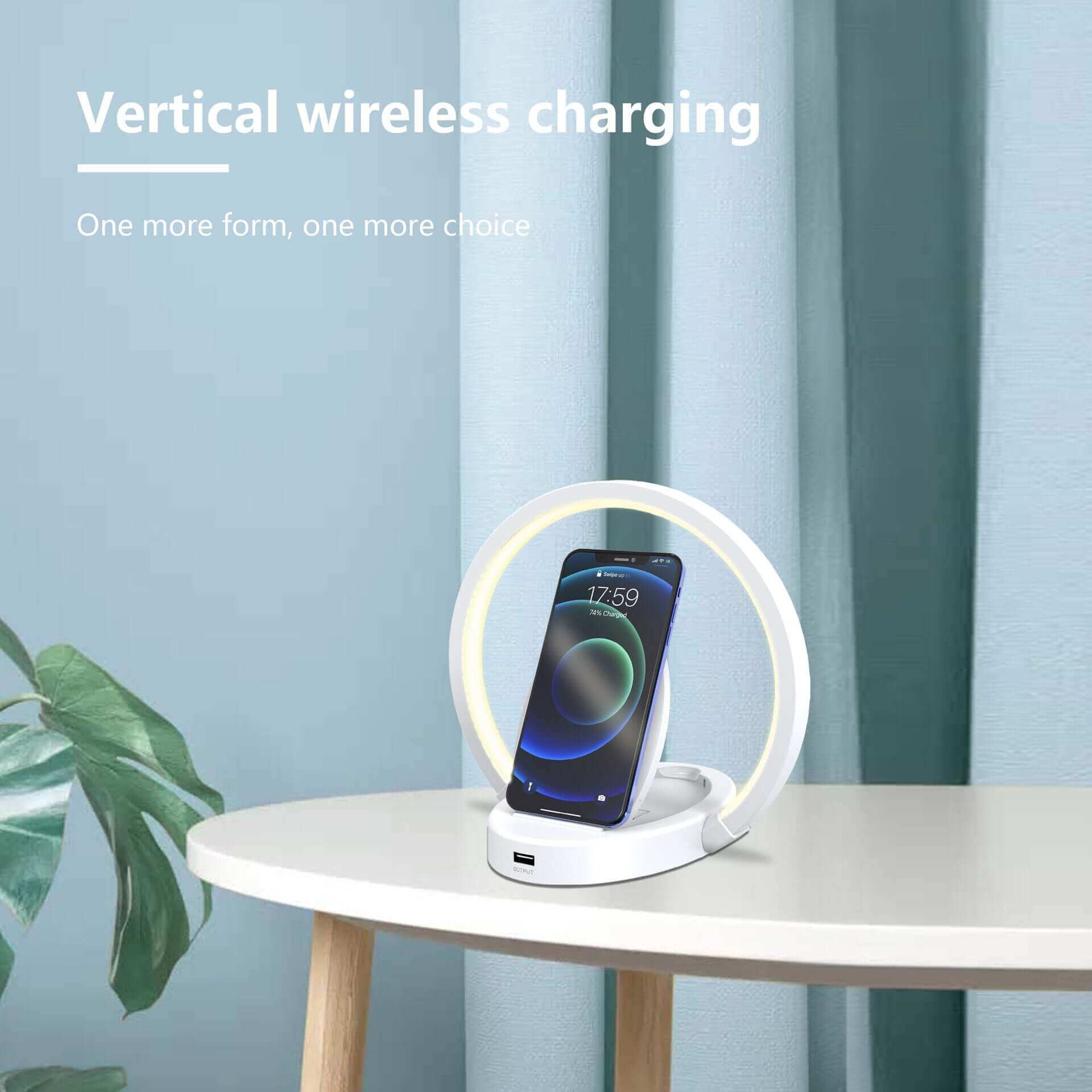 Night Lights Lamp Bluetooth Speaker Table Light With 10W Wireless Charger USB Port Phone Holder With Dynamic Color