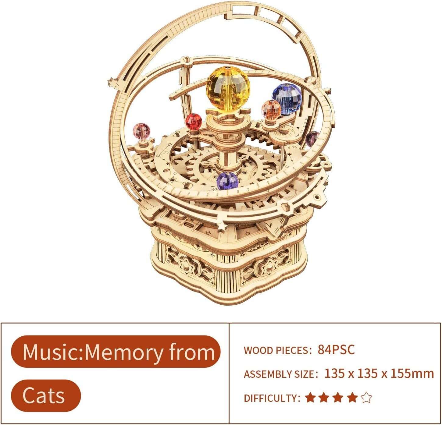 ROKR Rotating Starry Night Mechanical Music Box 3D Wooden Puzzle Assembly Model Building Kits Toys For Children Kids - AMK51