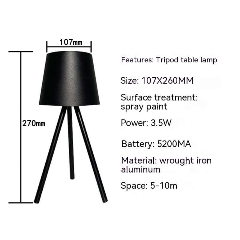 Elevate your space with our compact Triangle LED Desk Lamp. Measuring 107 X 260mm, this elegant lamp features a sleek painted finish and utilizes 3.5 watts of power. With a battery capacity of 5200mA, it is made of sturdy iron and aluminum and can illuminate spaces ranging from 5-10m. Perfect for adding a warm and inviting touch to your bedroom, creating a cozy ambiance during camping trips, or providing practical lighting in commercial settings.