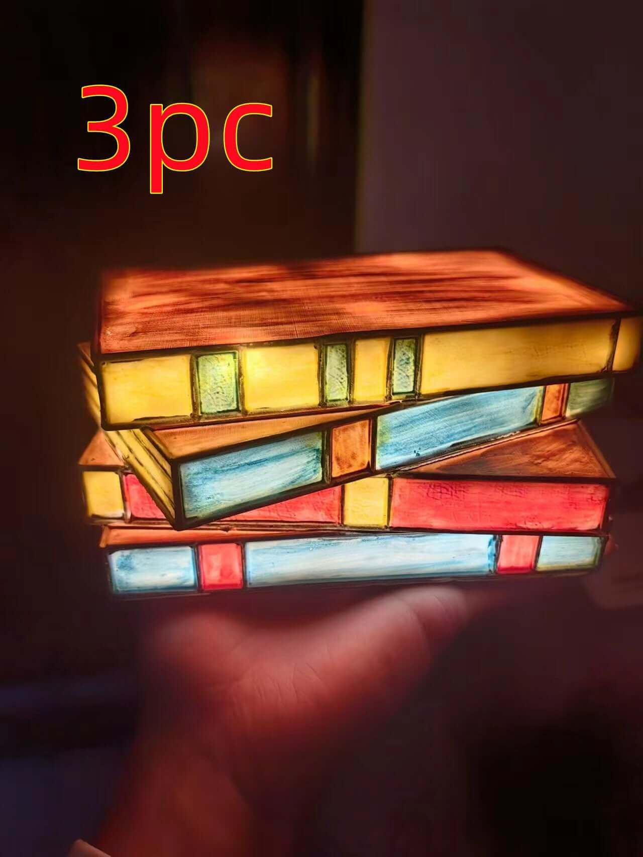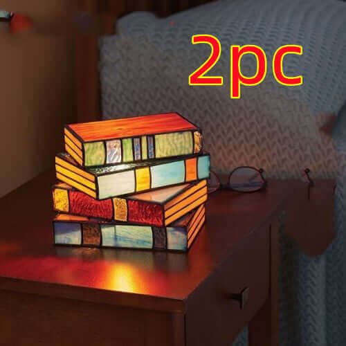 Stacked Books Lamp Nightstand Desk Lamps Resin Handicraft Stacked Books Light Stained Glass Table Desk Reading Light Decorative