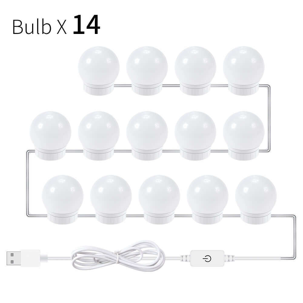 Experience the ultimate in convenience and durability with our USB Touch Switch LED Mirror Light Bulb. Made with wear-resistant and dust-proof PC material, this light features a touch memory dimmer switch for seamless, stepless dimming. Enjoy natural white light and easily rotate the line 360 degrees with the USB interface. Our unique suction cup or 3M glue fixed bulb ensures a secure installation. Plus, with adjustable wire length and gradient dimming, you can create the perfect lighting for any mirror. Choose between 2, 6, 10, or 14 bulbs, available in white or pink, with a power of 1w per bulb. With a color temperature of 4000-5000K and a maximum wire length of 4.6m, this LED light offers unparalleled versatility. Simply connect to any USB interface for a voltage of 5V and enjoy a luminous output of 334LM, 1002LM, 1670LM, or 233